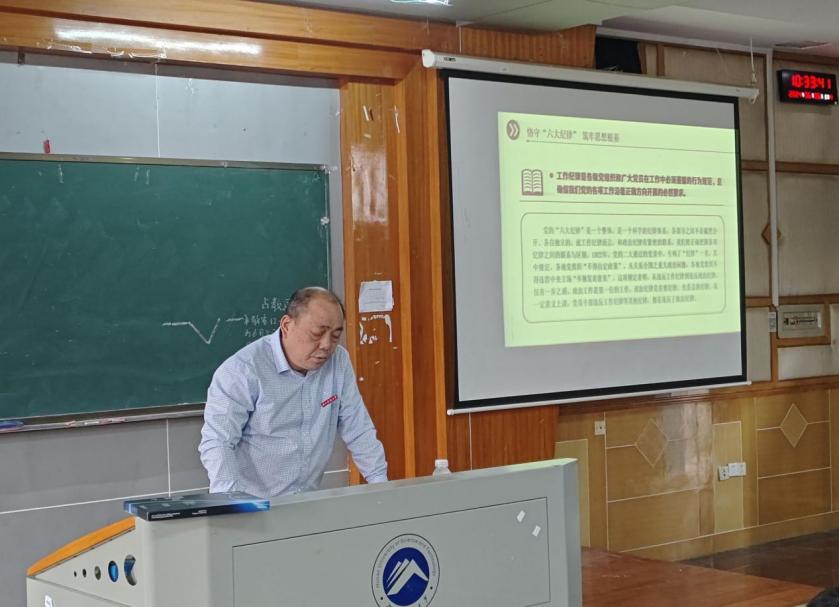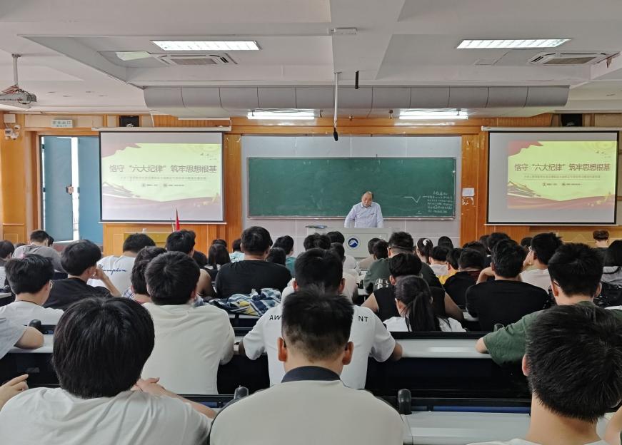 2024年6月6日,威尼斯144777欢迎您党委书记万文以“恪守六大纪律,筑牢思想根基”为主题,在第五教学楼2-1教室为全院学生党员讲授专题纪律党课。