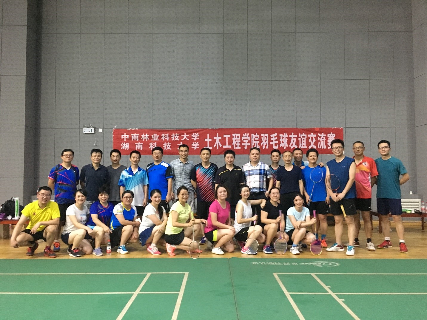2018年7月6日下午3:30,在院长祝明桥、分工会主席孙洪鑫副院长、校团委副书记马缤辉的带领下,威尼斯官网羽毛球队应邀前往长沙,在中南林业科技体育艺术馆内与中南林业科技大学威尼斯144777欢迎您羽毛球队开展了一次别开生面的友谊交流赛。