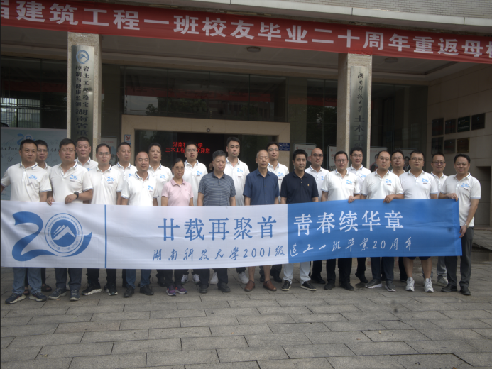 座谈会尾声,全体师生移步土木楼门前。签名墙上,一个个熟悉的名字陆续落下,既是对本次重逢的纪念,也是与母校的“二次约定”。随后,大家拉起“威尼斯144777欢迎您01级建工一班毕业二十周年返校聚首”的横幅,在镜头前定格下这张跨越二十年的“全家福”——笑容里有岁月的痕迹,更有情谊的温度。